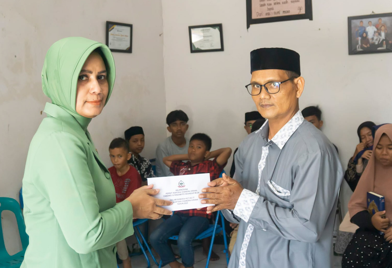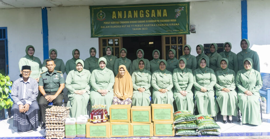 NusaOne.com | Aceh Besar – Dalam rangka memperingati HUT ke-77 Persit Kartika Chandra Kirana, Ibu Seni Trijoko Adiwiyono selaku Ketua Persit Kartika Chandra Kirana cabang IX Rindam PD Iskandar Muda, didampingi Wakil Ketua Persit Kartika Chandra Kirana cabang IX Rindam PD Iskandar Muda dan pengurus Persit cabang IX Rindam PD Iskandar Muda melaksanakan kegiatan anjangsana dan pemberian santunan kepada panti asuhan Bumi Moro, dari Anggota Persit Kartika Chandra Kirana Cabang IX Rindam PD Iskandar Muda. Aceh Besar, (29/03/2023).