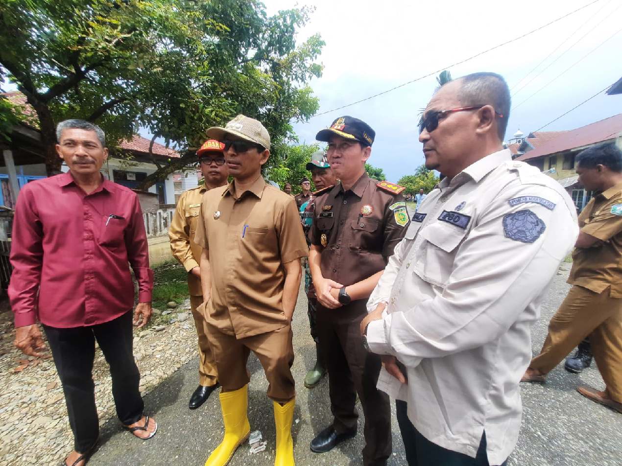 NusaOne.com | Aceh Selatan – Bupati Aceh Selatan Tgk. Amran meninjau langsung kawasan Keude Padang, Kluet Utara, Kabupaten Aceh Selatan yang dilanda banjir, Senin (8/5).
