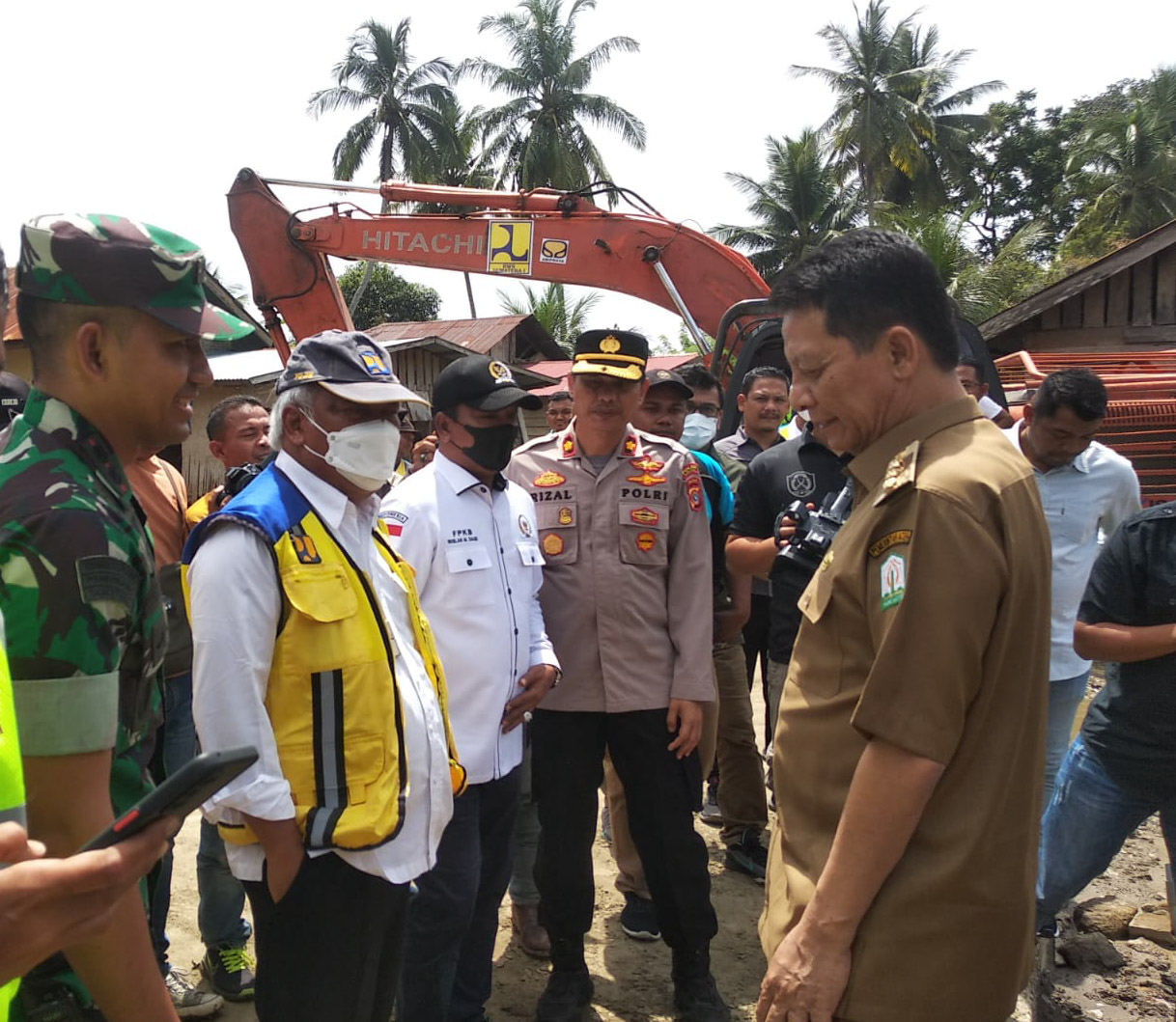 NusaOne.Com|Lhoksukon – Wakapolres Aceh Utara Kompol Rizal Antoni, mendampingi Menteri Pekerjaan Umum dan Perumahan Rakyat (PUPR) Dr. Ir. M Basuki Hadimuljono beserta rombongan meninjau situasi pasca banjir di Kabupaten Aceh Utara, Selasa, 18 Oktober 2022.