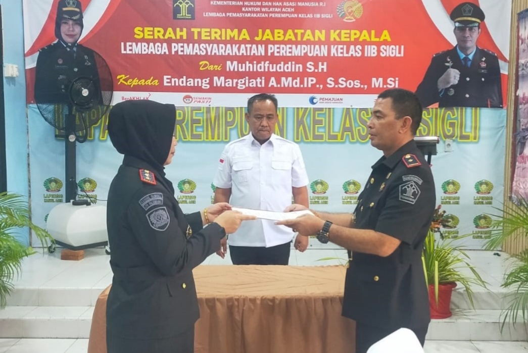 NusaOne.com | Sigli – Kadiv Pemasyarakatan Yulius Sahruzah menyaksikan langsung serah terima jabatan Kepala Lapas Perempuan (LPP) Sigli yang dilaksakanan pada Kamis (19/10/2023).
