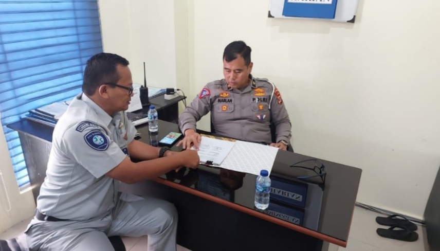 NusaOne.com | Banda Aceh – Kepala Bagian Operasional Jasa Raharja Cabang Aceh Harry Herawan bersialhturahmi dengan Kasi STNK Ditlantas Polda Aceh, Kompol Marlan di Samsat. Banda Aceh.(18/23).