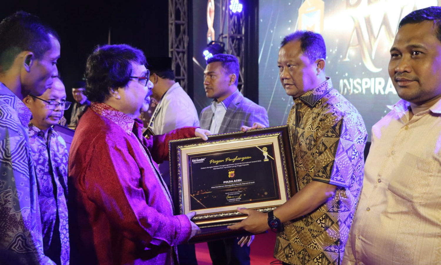 Penghargaan itu diserahkan Pimpinan Umum Serambi Indonesia H. Samsul Kahar dan diterima Kapolda Aceh yang diwakili Kabid Humas Kombes Joko Krisdiyanto di gedung AAC Dayan Dawood Universitas Syiah Kuala, Kota Banda Aceh, Jumat malam, 17 Maret 2023.