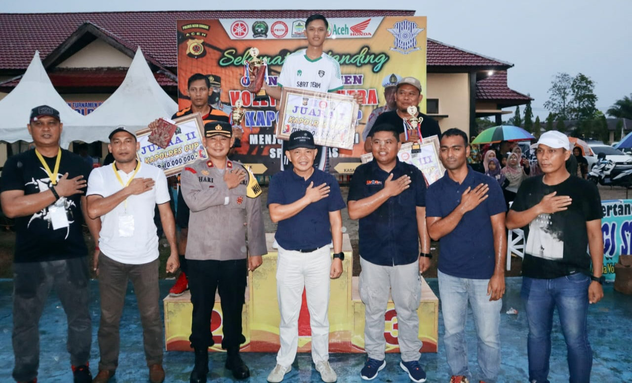 Kapolres Aceh Singkil AKBP Iin Maryudi Helman menutup turnamen dan mengatakan “Selamat kepada tim yang memenangkan turnamen Bola Volly Kapolres Cup 2022 dalam rangka memeriahkan Hari Bhayangkara Ke-76.