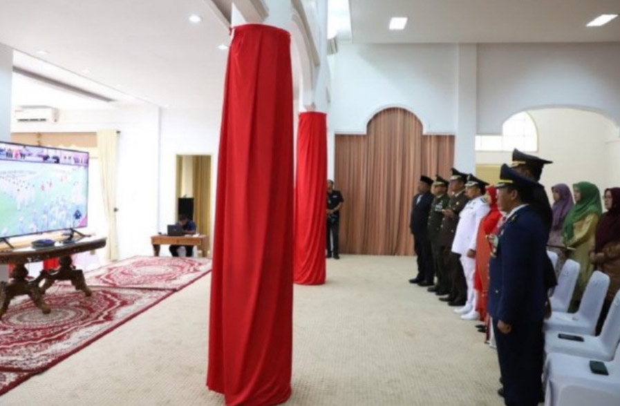 Di Aceh Besar, Pj Bupati Muhammad Iswanto bersama Forkopimda mengikuti kegiatan tersebut dari Meuligo Bupati di Kota Jamtho.
