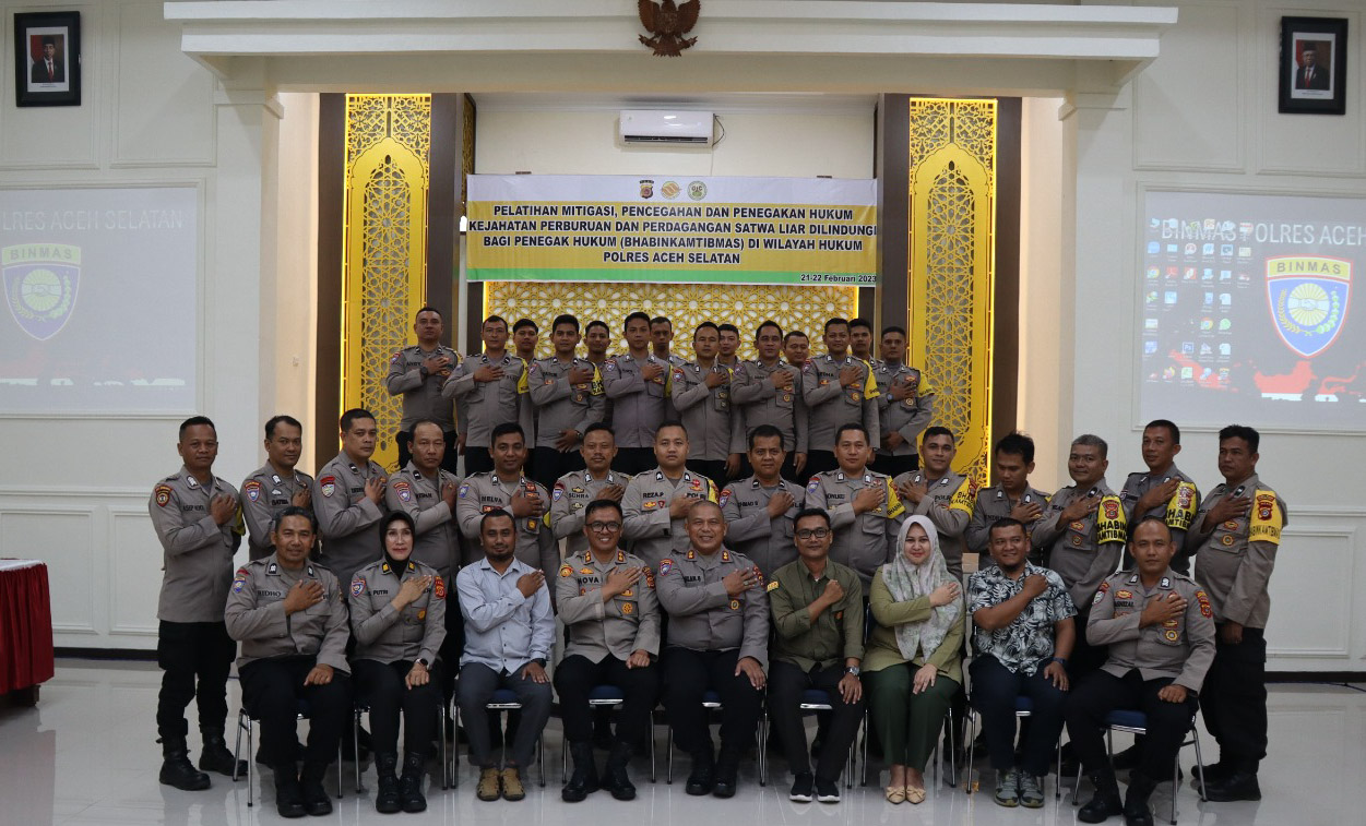 NusaOne.com | Aceh Selatan – Dit Binmas Polda Aceh mengelar kegiatan Sosialisasi “Pencegahan dan Penegakan Hukum Kejahatan Satwa yang Dilindungi” di Aula Bharadaksa Mapolres Aceh Selatan, Selasa (21/02).
