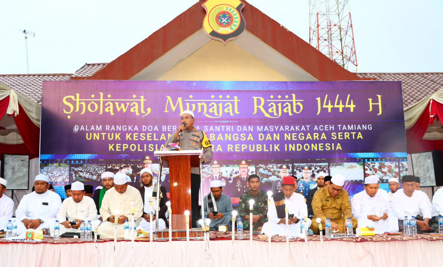 Kapolres Aceh Tamiang AKBP Muhammad Yanis menyampaikan, bahwa selawat munajat Rajab 1444 hijriah serta doa bersama ini untuk keselamatan bangsa, negara, dan Polri yang kita cintai. Selain itu, kata Yanis, doa bersama juga diniatkan untuk korban gempa Turki dan Suriah.