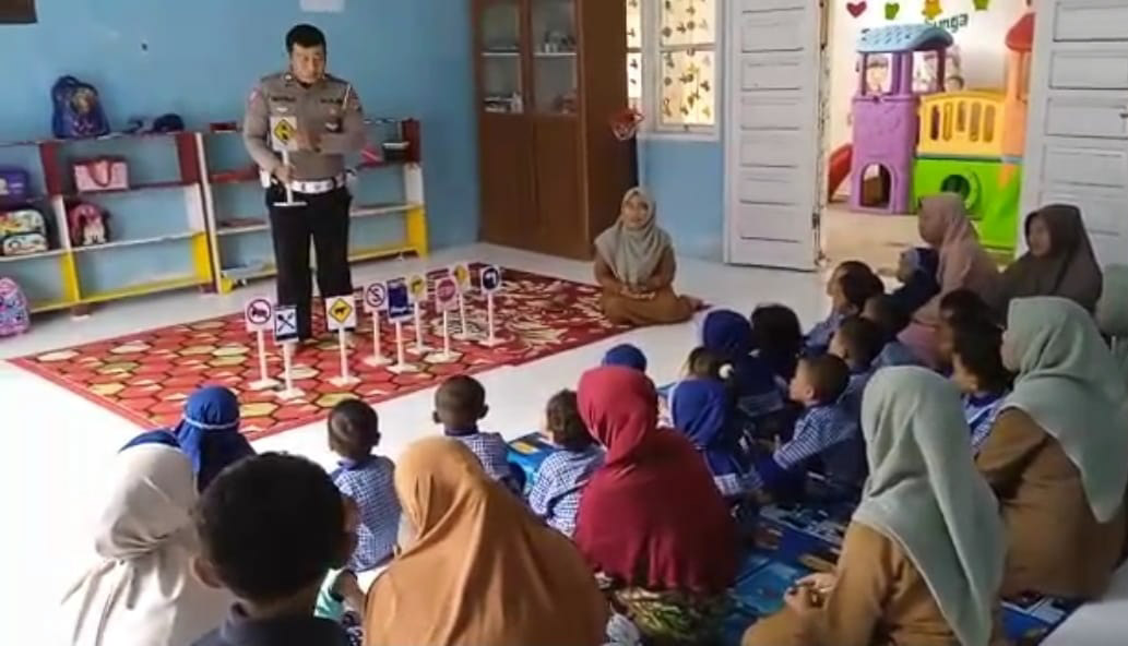 Satuan Lalu Lintas Polres Aceh Selatan melalui Unit Dikyasa melaksanakan giat Polisi Sahabat Anak bertempat di TK Harapan Bunda Gampong Lhok Rukam Kecamatan Tapaktuan, Senin (5/12).