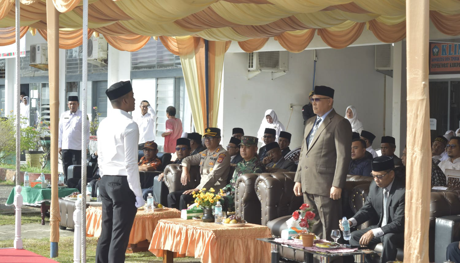 Mewakili Bupati Aceh Selatan, Kamarsyah S.Sos, MM, Asisten I Bidang Pemerintahan Keistimewaan Aceh bertindak selaku Inspektur upacara, Fakrul Mubarak, SE karyawan KUA Aceh Selatan bertindak sebagai Komandan upacara, Ade Satria Guntara, SE staf Kantor Kemenag Aceh Selatan sebagai Perwira upacara.
