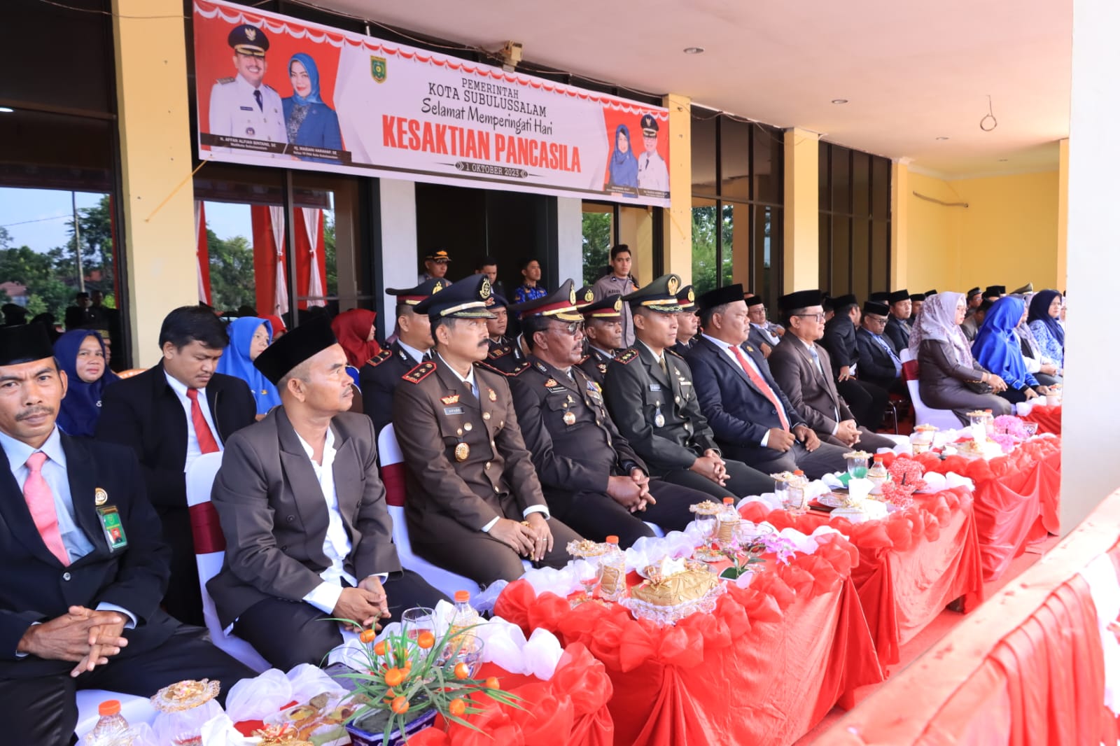 Tampak hadir Walikota Subulussalam H. Affan Alfian Bintang, SE, Wakil Walikota Subulussalam Drs. Salmaza, MAP, Ketua DPRK Subulussalam diwakili Anggota DPRK Subulussalam Khalidin, Dandim 0118/Subulussalam Letkol Inf Un Wahyu Nugroho, Kejari Subulussalam Supardi, SH, Ketua Mahkamah Syariah Subulussalam Junaedi, SH, Plt. Sekda Kota Subulussalam Sairun, S.Ag, M.Si, PJU Polres Subulussalam, Danki Brimob Kompi 2 Batalyon C Pelopor diwakili oleh Wadanki Ipda Eri dan para Asisten Kota Subulussalam.(*)